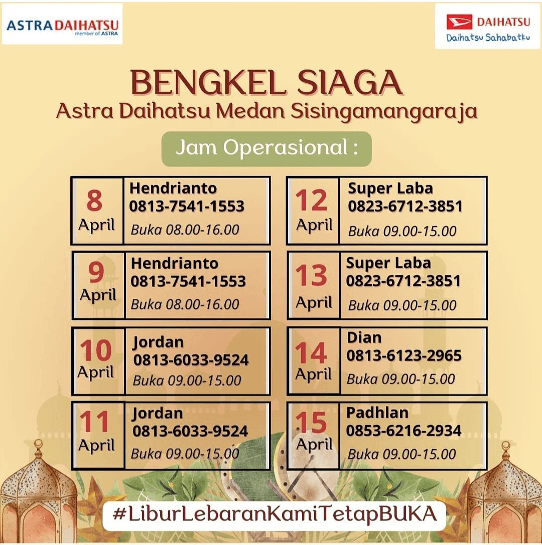 Selamat datang di Astra Daihatsu Medan Sisingamangaraja. Kami menawarkan beragam mobil Daihatsu terbaru dengan penawaran paling menarik. Tersedia beragam promo maupun fasilitas pembayaran secara kredit dan tunai. Dapatkan juga layanan purna jual dengan fasilitas bengkel terbaik hanya di Astra Daihatsu Medan Sisingamangaraja.