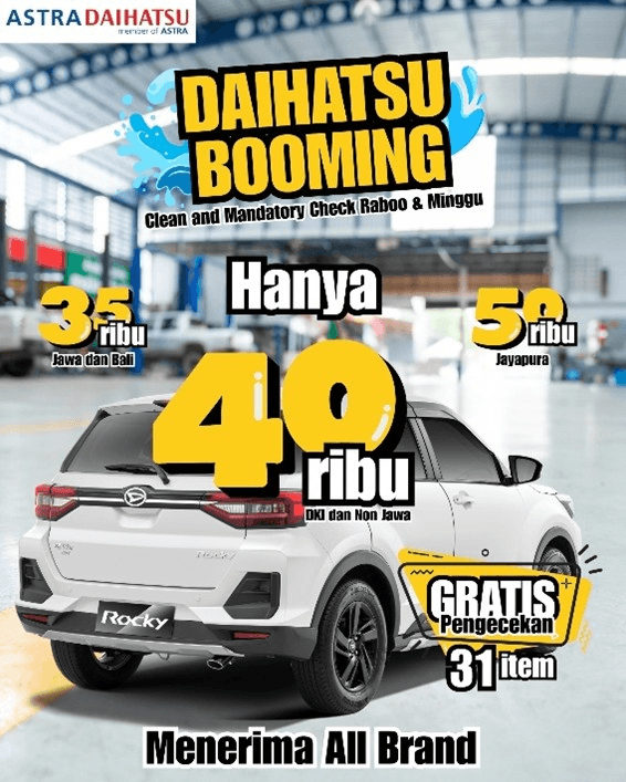 - Untuk pemesanan kendaraan Daihatsu dengan status kendaraan masih dalam proses produksi dan/atau pemesanan di Agen Tunggal Pemegang Merek (inden), maka harga sewaktu–waktu dapat berubah menyesuaikan harga On The Road terbaru saat unit kendaraan bermotor tersedia.